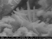 一旦反應被激活可以沿著混 凝土的裂縫看到粗糙長晶體 和細小針狀晶體的生成。晶 體完全封堵住裂縫,降低混 凝土滲透性,提供防水保護 |